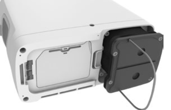 Push the column assembly into the device such that the columns are fully seated into the OxyGo NEXT concentrator. The spring-loaded latch button should fully return to the closed position.